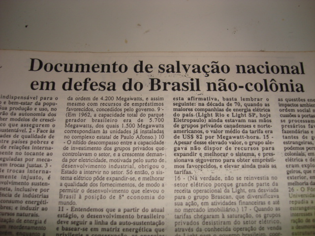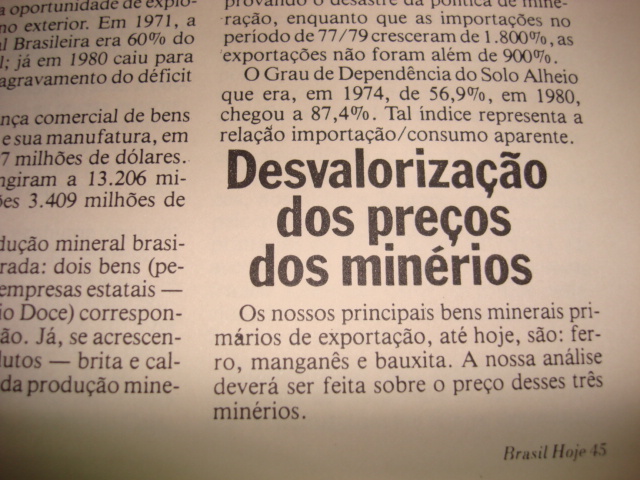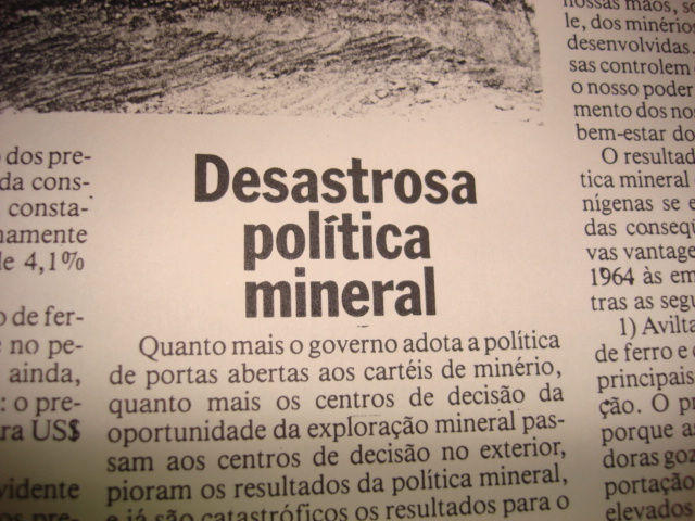 02) Senhores, o Brasil está perdendo centenas de bilhões de dólares por ano com o descaminho na exportação dos minérios estratégicos. O Brasil está vendendo todas as suas riquezas de qualquer jeito e recebendo o pagamento em moeda podre, sem qualquer valor, ficando caracterizada uma traição ao país e ao povo brasileiro. (cidadão brasileiro)